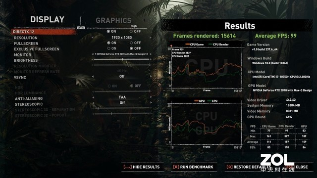 首先来看《古墓丽影:暗影》,整体画质为“High”,使用游戏内置的BenchMark进行测试,平均帧数:99帧。