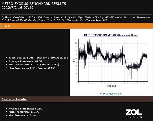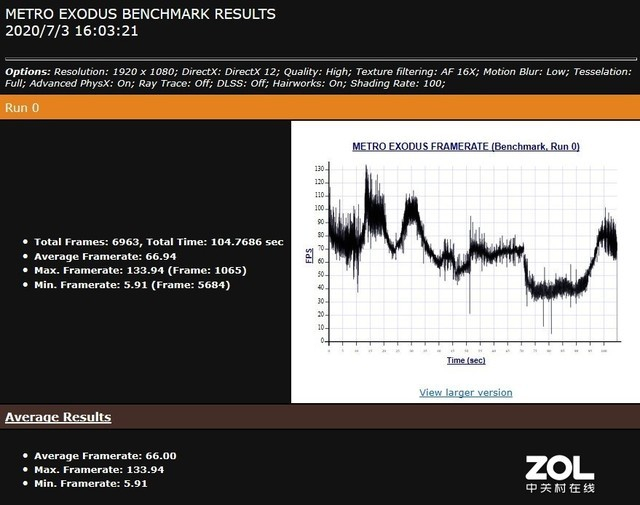 最后是《地铁:离去》,整体画质为“High”,关闭光线追踪及DLSS,使用游戏内置的BenchMark进行测试,平均帧数66帧。