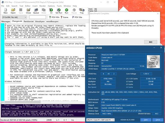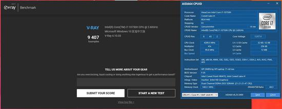 在VRay的测试中,i7-10750H的成绩为9407ksamples。
