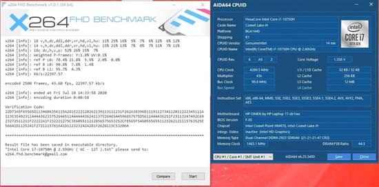 i7-10750H的成绩为43.6FPS。