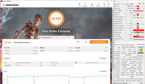 在3DMark Fire Strike Extreme的测试中,i7-10750H的物理分数为20842,图形分数为9046。