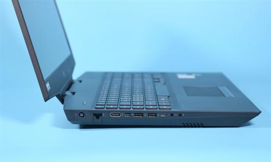 机身左侧有1xHDMI 2.0、1xMiniDP、2x3.5mm耳麦接口、1xType-C型全功能雷电3接口、2xUSB 3.2 Gen1、1Gbps网口以及一个圆口的电源插孔。