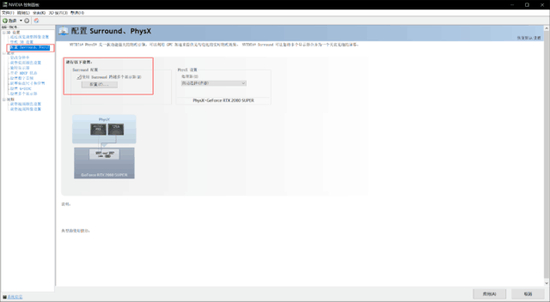 如果需要设置“2连屏”或者“3连屏”的话,可以在N卡设置面板中打开Surround功能,就可以根据实际情况调整对应的设置了。