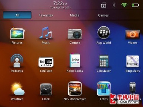 在规格方面PlayBook达到主流的行列,1GHz处理器和1GB RAM,支持1080P播放,这些配置都为PlayBook的流畅运行打下基础。7英寸的尺寸适合携带,放在口袋里都不成问题,而屏幕单位像素数目ppi为170,高于iPad 2的132,所以显示效果更细腻。