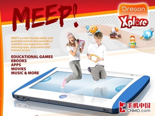 Oregon Scientific(欧西亚)刚刚在American International Toy Fair(2012纽约国际玩具展)上发布了一款儿童平板产品MEEP,它采用7英寸屏幕,外形加固设计,可承受掉落的冲击,即使屏幕被打碎也不会溅开碎片,有效保护了儿童的安全。开发方并没有公布Android版本和处理器型号,已知的是支持Wi-Fi上网,主要有远程家长控制和互联网分级等特色项目,平板本身将有内部存储器并可通过SD卡扩展,还将附赠一些面向儿童的工具。