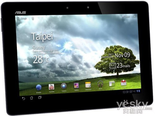 TF201配置了1.5GHz主频的nVidia Tegra 3四核处理器,搭配1GB RAM和32GB机内ROM空间,运行日常应用相当流畅。屏幕上方搭载了一枚120万像素前置摄像头,支持高清视像通话,而后置摄像头则升级为800万像 素背照式,并拥有f/2.4的大光圈,拍照效果相当不俗。