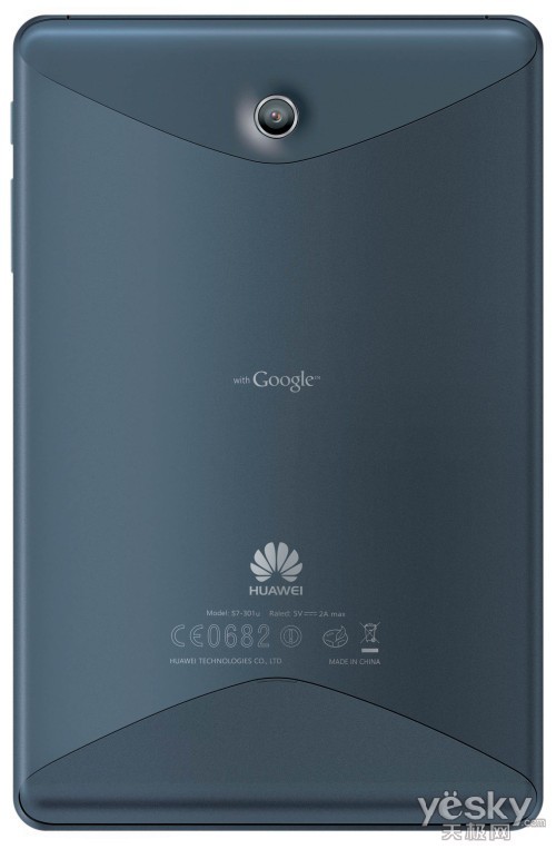 华为MediaPad使用了一块7英寸的IPS屏幕,分辨率为1280x800。该平板造工细腻,玻璃与金属的结合处工艺水准很高,质感不错。 正面没有设置任何按钮,右上角有一枚前置视频摄像头,像素数为130万,机身顶部为3.5毫米耳机口及两个扬声器,机身底部分别是充电孔,HDMI输出口 与microUSB接口。机身右侧是电源键和音量键,它们被设计得十分纤细,与机身风格比较契合。