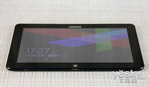 接口方面,三星700T的键盘底座提供了2个USB3.0接口,机身的扩展性也算丰富。机身融合了音视频接口,一个USB3.0接口,和 Spen手写笔。值得一说的是该机配有Micro SD卡槽,这点很重要,虽然700T有64G存储空间,但是Windows 8的4个恢复分区加上系统就占了将近一半,仅剩的32G空间就突显出Micro SD卡的作用了,虽然扩展卡的读取速度会跟硬盘有些差距,不过在你使用后,还是很有必要考虑这个问题的。