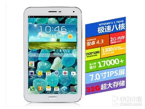 这款奇葩Nexus 7二代竟然采用八核处理器,屏幕分辨率仅为1280×800像素,2GB运行内存,16GB存储,预装Android 4.3系统,还妄称首台搭载Android 4.3系统的设备,拥有500万、800万像素前后两个摄像头(真实性存疑)。
