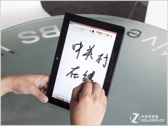 联 想ThinkPad 10平板电脑的这块10.1英寸显示屏材质选用的是主流的IPS屏,在可视角度和色彩锐利度等方面都具有很高的优势。分辨率达到了 1920*1200的级别,凭借这样的数据它成功跻身高分屏的行列。所谓高分屏就是分辨率大于XGA屏幕的1024*768分辨率,由于在同样大小的屏幕 面积上显示更多的像素点所以就能够给人带来更精细的画面效果,通过下面的几幅屏幕显示实拍图我们也可以看到这块屏幕所带来的优质显示效果。