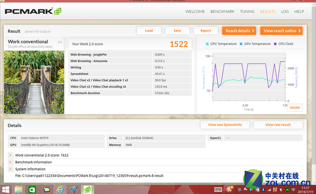 我们选择的测试软件是PowerMark,它和PCMark、3DMark一样,也是由FutureMark公司开发推出的。它会持续不断的循环运行一 组测试脚本,其中包括四种常见应用:上网浏览,文档处理,视频播放,3D游戏,从而尽可能的贴近绝大多数用户的实际使用情况。