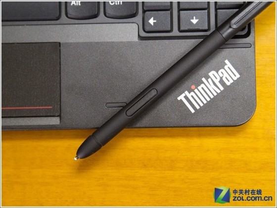 尽管我们没有在键盘的中间看见经典的“小红帽”按钮,但是我们却在键盘的侧边顶部看到了另一个“小红帽”,看来ThinkPad系列真的是十分钟爱这个设计。这个“小红帽”便是隐藏在键盘内部的电磁场触控笔,这样的设计也避免了丢失的情况发生。
