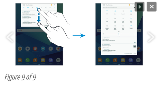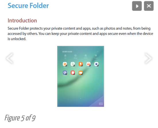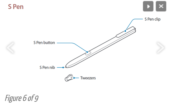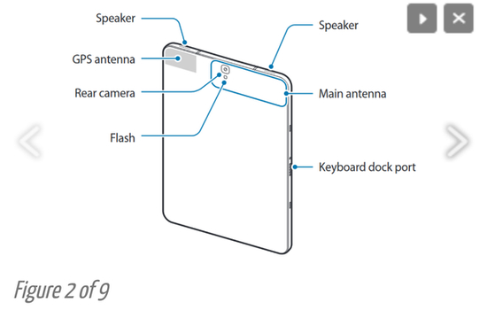 手册还显示,Galaxy Tab S3机身一侧提供键盘坞端口,GPS天线,后置摄像头和闪光灯的位置。 Galaxy Tab S3将附带安全文件夹功能,用于保护私人内容和应用程序。Galaxy Tab S3具有屏幕关闭记事功能,用于使用S Pen在屏幕上书写,而不打开设备。用户还可以将S Pen悬停在屏幕上,并打开Air命令面板以创建笔记,在屏幕上书写等。手册图像显示,S Pen在平板电脑上没有专用插槽,它将作为外部附件提供。