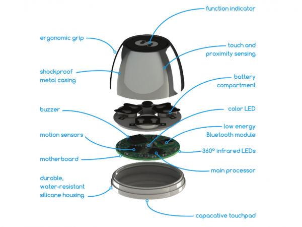 近日,一款产品在Kickstarter众筹,先不介绍有什么功能,先扒一下它的“内涵”:防震套、蜂鸣器、运动传感器、主板、耐用防水硅胶板、多功能指示器、触碰传感器、电池盒、LED、低功耗蓝牙、360度广角红外LED以及电容触控屏。能猜出来是什么吗?