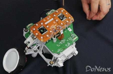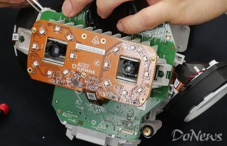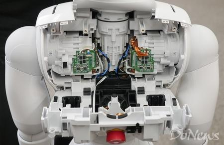 仿生学的眼部设计,安装的是距离图像传感器,通过左右眼的发射和接收来检测距离。围绕图像传感器上面有一圈LED,根据Pepper的设置状态,让“眼睛”更有不同的神采。