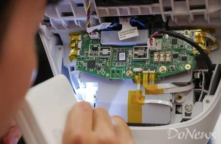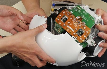 由于Pepper表面的几乎没有螺丝孔作为固定,基本利用利用壳内设计卡榫进行固定的,所以拆解时会用到专用薄铁片以及电钻等直接操作。