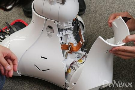 头部拆解完全后,接下来开始拆解Pepper的躯体部分。打开外壳后,Pepper还做了第二层防尘保护层。