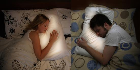 伴侣出差在外,晚上是不是会辗转反侧孤枕难眠?双人大床显得空空荡荡,一个人的被窝怎么也暖和不了。隔着电话总听不真切对方的声音,丢掉电话,试试Pillow Talk智能情侣枕吧。睡前带上你的智能手环,你就能听到枕头传出的心跳声。伴随着彼此的心跳声入眠,说不定会一起梦到不可描述的场景。
