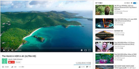 6、YouTube。目前有一个专门的HDR频道,里面收集了一些最新的HDR内容。YouTube一直都是最新视频形式的尝鲜者,除了HDR内容,还有8K甚至12K的视频,不过仅具有“演示”意义。