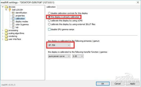 calibration。选择第二项,表示显示器的色彩已经校准为BT.709(此处根据显示器色域性能选择不同的标准)。其他方面默认设置就好。