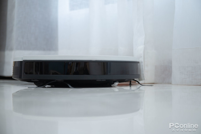 外形上科沃斯DJ65使用传统较为常见的圆形主题设计,白色剖面搭配黑色绕边,比较白搭,能和任何装修风格融为一体。比较实用的是,科沃斯DJ65的整机高度仅有7.7cm,非常适合钻入一些橱柜或床的底部进行清洁,避免被卡主的窘境。