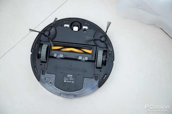前端使用了双边刷设计,左刷顺时针旋转,右刷逆时针旋转,理论上可以非常有效地将垃圾聚拢并“收入麾下”,相对比单边刷更加耐用些。