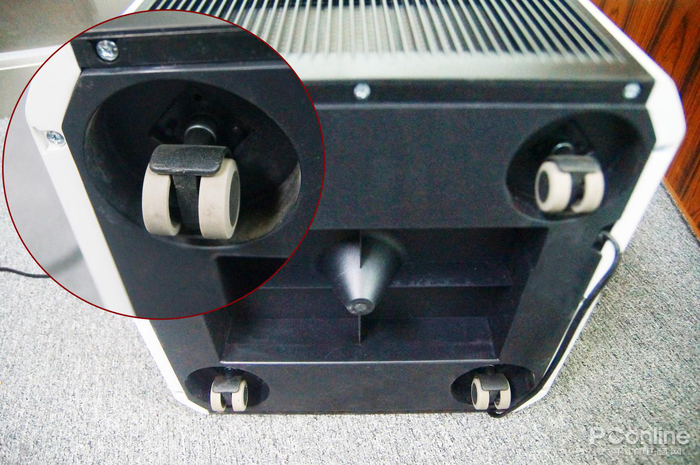 小白3.0底部有万向轮,移动还是非常方便的。机身两边也有凹面把手,也可以很顺利地提起来。