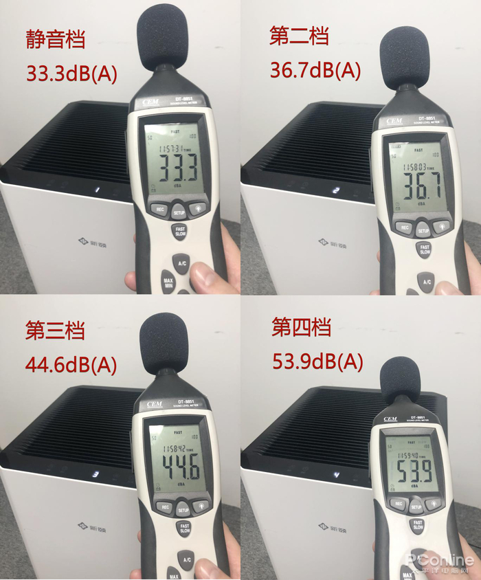 第二档,噪音在36.7分贝,这个噪音依然非常安静,不会对我们有任何影响;