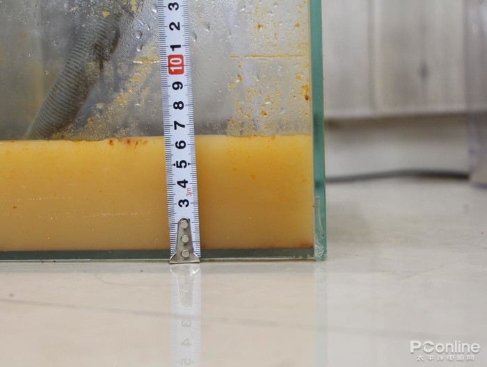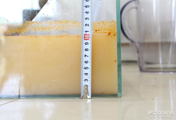 大家比较关心的耗水量和耗电量,这次进行了真实的测试。我将洗碗机的排水口放置在一个长39cm、宽29cm的玻璃容器中,同时用电力检测仪对耗电量进行统计。