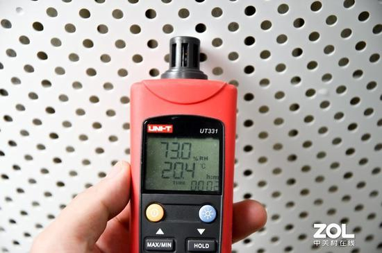把检测模块放在机身上是没什么实际意义的,机身周围的湿度肯定高于房间内其他角落,检测数显呈现的数值不具备参考价值,倒是有点欺骗的嫌疑。
