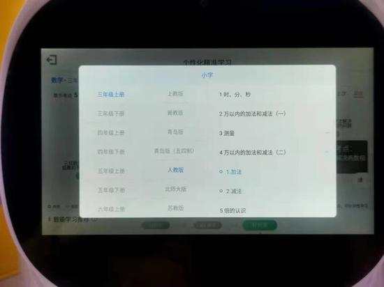 进入数学科目选择“个性化精准学习”,左上角页面先选择年级、教材版本和章节,这些和孩子的课本是完全对应的哦!