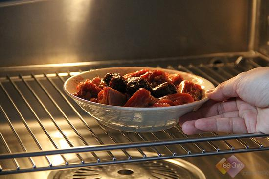 梅香排骨酸甜宜人,但蒸这种难熟的菜十分考验蒸箱的性能,如果上蒸汽慢、蒸汽不够足、顶部还有冷凝水滴落,那真是一场灾难,不但蒸了半天有可能蒸不熟,菜品的口感还会大打折扣。那这款老板集成油烟机表现如何呢?我们拭目以待。
