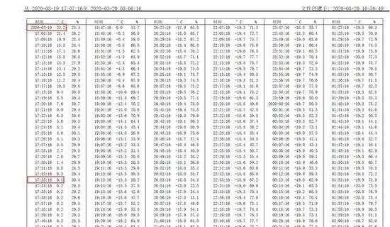 对应降温图表的温度记录(每1分钟记录一次)