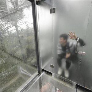 全透明的厕所,就是说这个厕所四面八方均由全透明玻璃组建而成,男女厕之间仅一面玻璃之隔,朦胧可见。