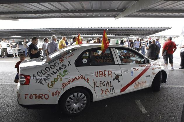西班牙的士司机抗议Uber 要求限制发放网约车牌照