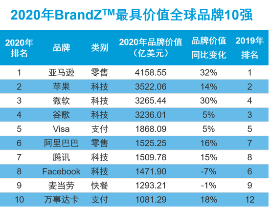 2020年BrandZ最具价值全球品牌100强排行榜发布(附完整榜单)