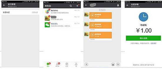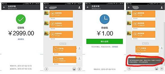 下图中所示的这组图片是用来说明,未实名认证的账号可以收取转账3000元,收取红包1000元,共4000元。当转账额度接近3000元时,微信才提示,“单日收钱金额超过限额,需通过添加一张银行卡验证你的身份信息后,才可以继续收钱”。