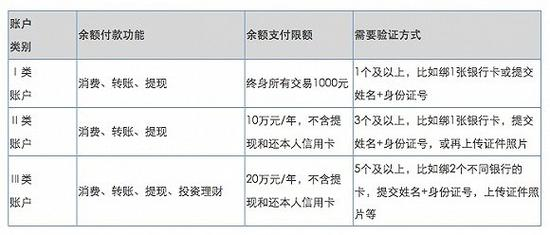 (2)未实名账户仍可以付款,对外号称日限额为1000元。但实测日限额实为2000元,次日可以继续支付。(央行规定的实名限额分类如下图)