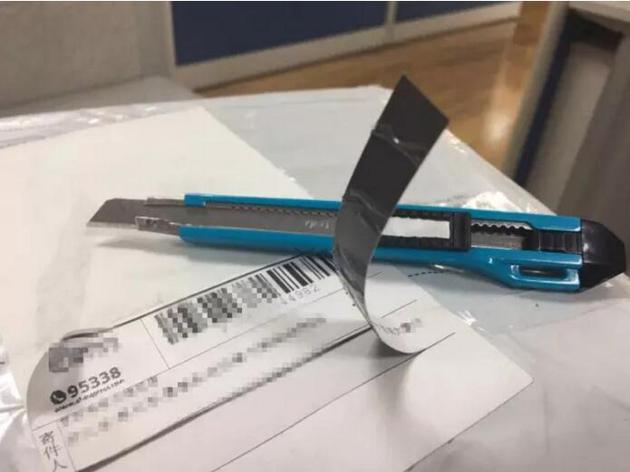 2。对于一些不好撕掉的快递单,我们可以用小刀将其划下来