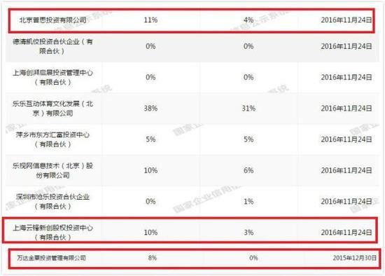 除了王健林的全面退出之外,其子王思聪的北京普思投资有限公司目前在乐视体育中的持股比例为4%。根据资料显示,2015年12月30日,普思投资最高时曾一度增持其在乐视体育的股权,持股比例高达11%。但最新的工商资料显示,截至2016年11月24日,普思投资已经减持了在乐视体育中的持股比例,目前持股比例为4%。