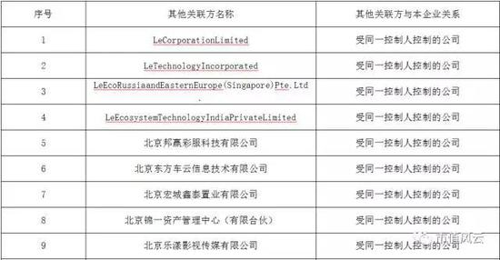以上是合营企业,除此之外,乐视生态圈还有庞大的体外循环系统,也就是同属于贾老板控制的错综复杂的关联企业: