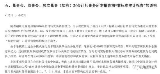 会计师出具的是增加强调事项的“非标准审计报告”,管理层在年报中给出的解释说明是: