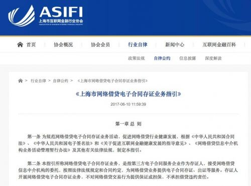 【TechWeb报道】6月12日消息,上海市互联网金融行业协会近日发布了《上海市网络借贷电子合同存证业务指引》(简称“指引”),据了解,这是全国首个针对网络借贷电子合同存证业务的指引性文件。