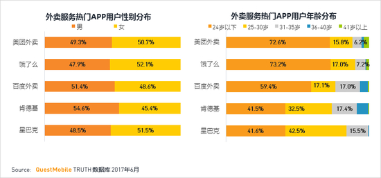 ·美团外卖和饿了么更受到24岁以下用户的喜爱;星巴克和肯德基受到25-30岁用户喜爱。