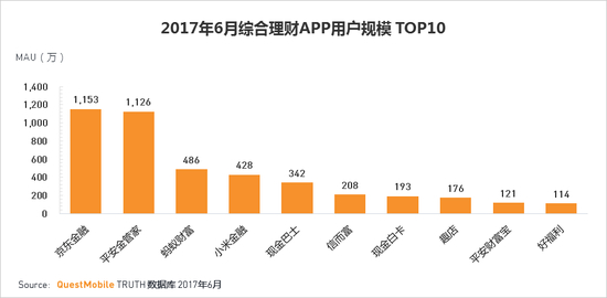 ·京东金融和平安金管家APP在月度用户规模领跑行业。