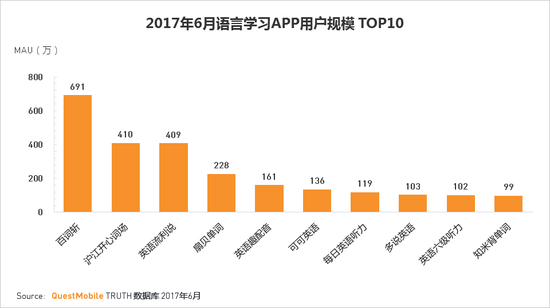 ·语言学习APP是较为细分的行业之一,以英语学习类APP为主。