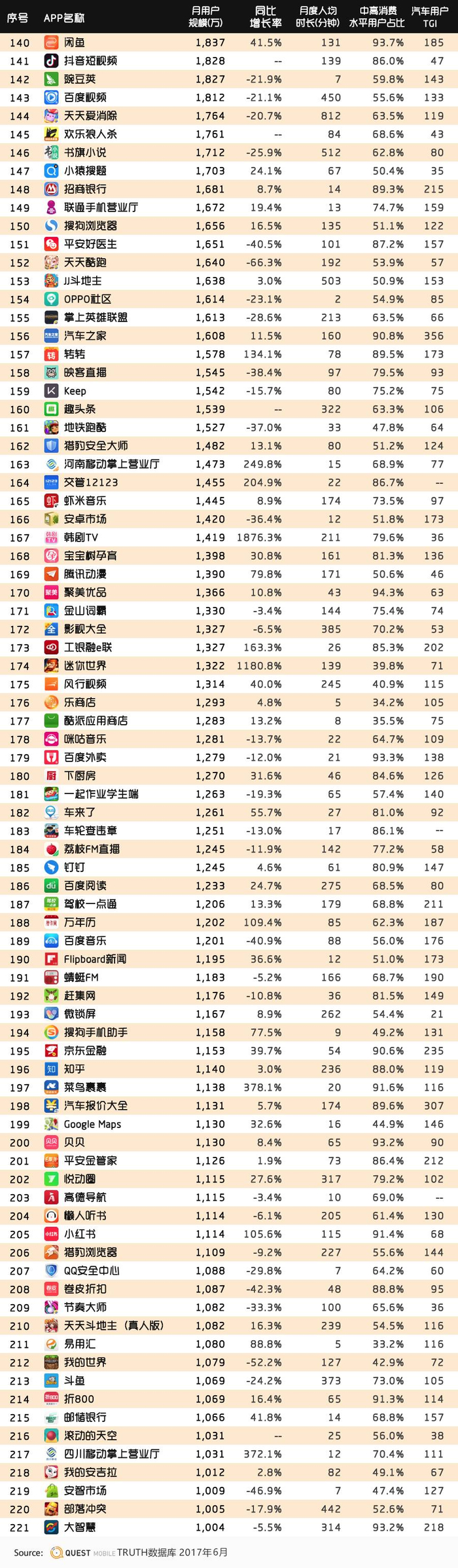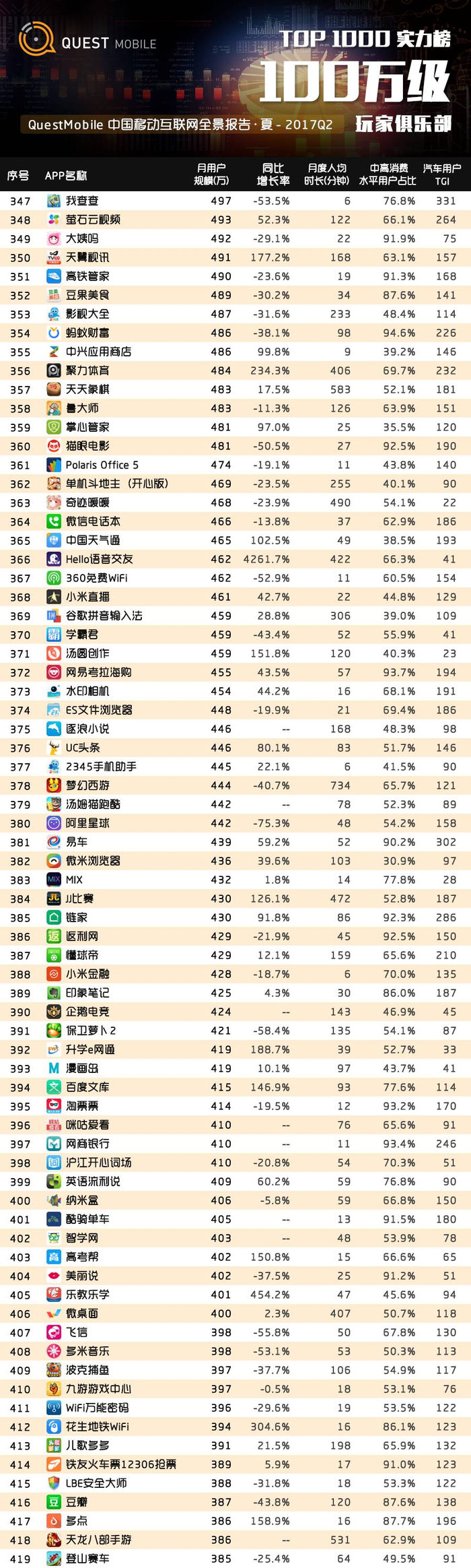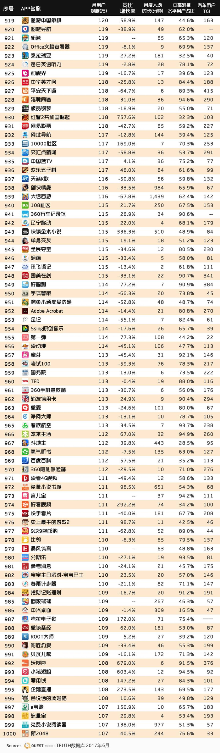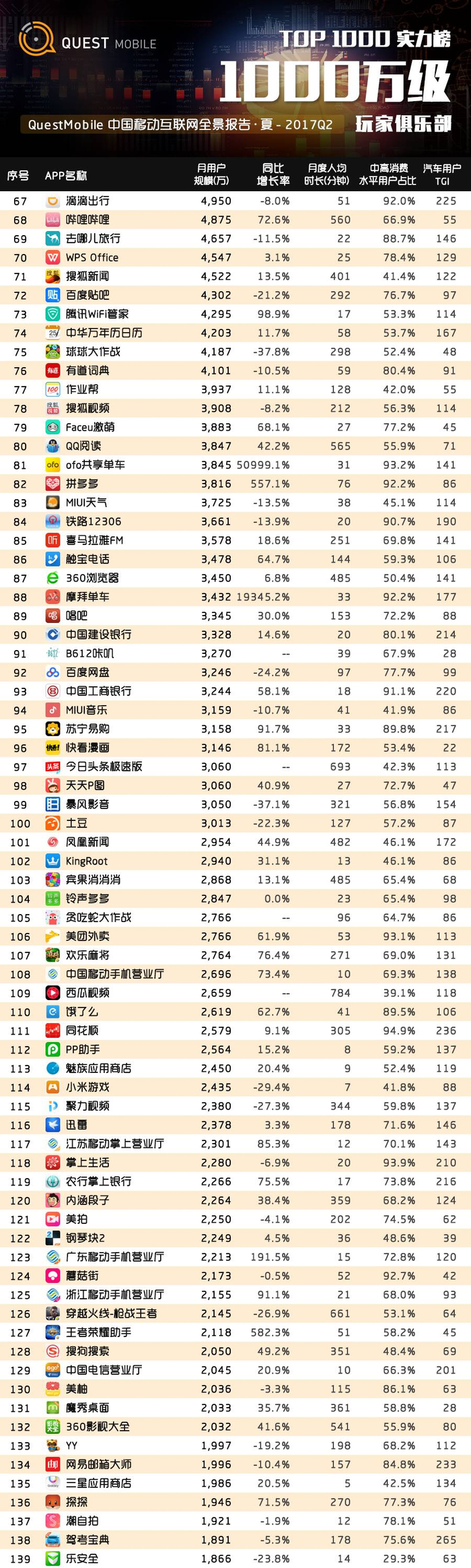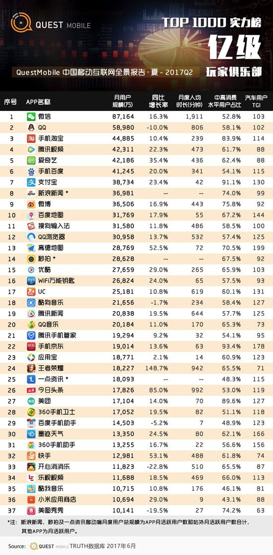 QuestMobile2017夏季TOP1000大榜单