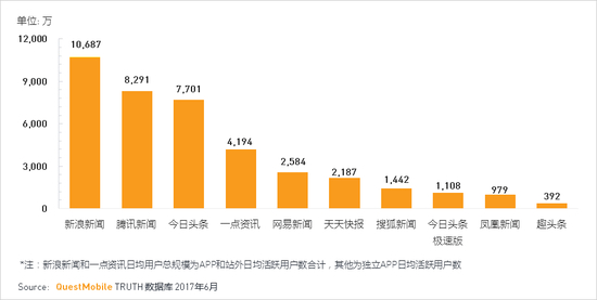 ·新浪新闻除了其独立APP用户持续增长外,也积极借助移动网页以及微博渠道资源优势做内容分发。2017年6月,新浪新闻生态流量显示月度总用户已接近3.7亿,月日均用户也超过1亿。