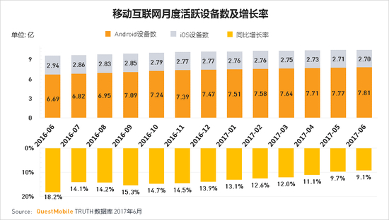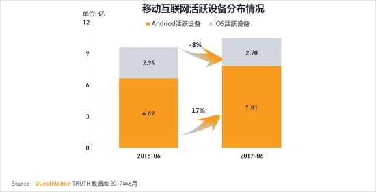 1.2017年中国移动互联网活跃设备概况