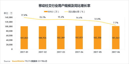 ·全民社交已成常态,2017年移动社交行业用户总规模持续超过10亿且较为稳定。